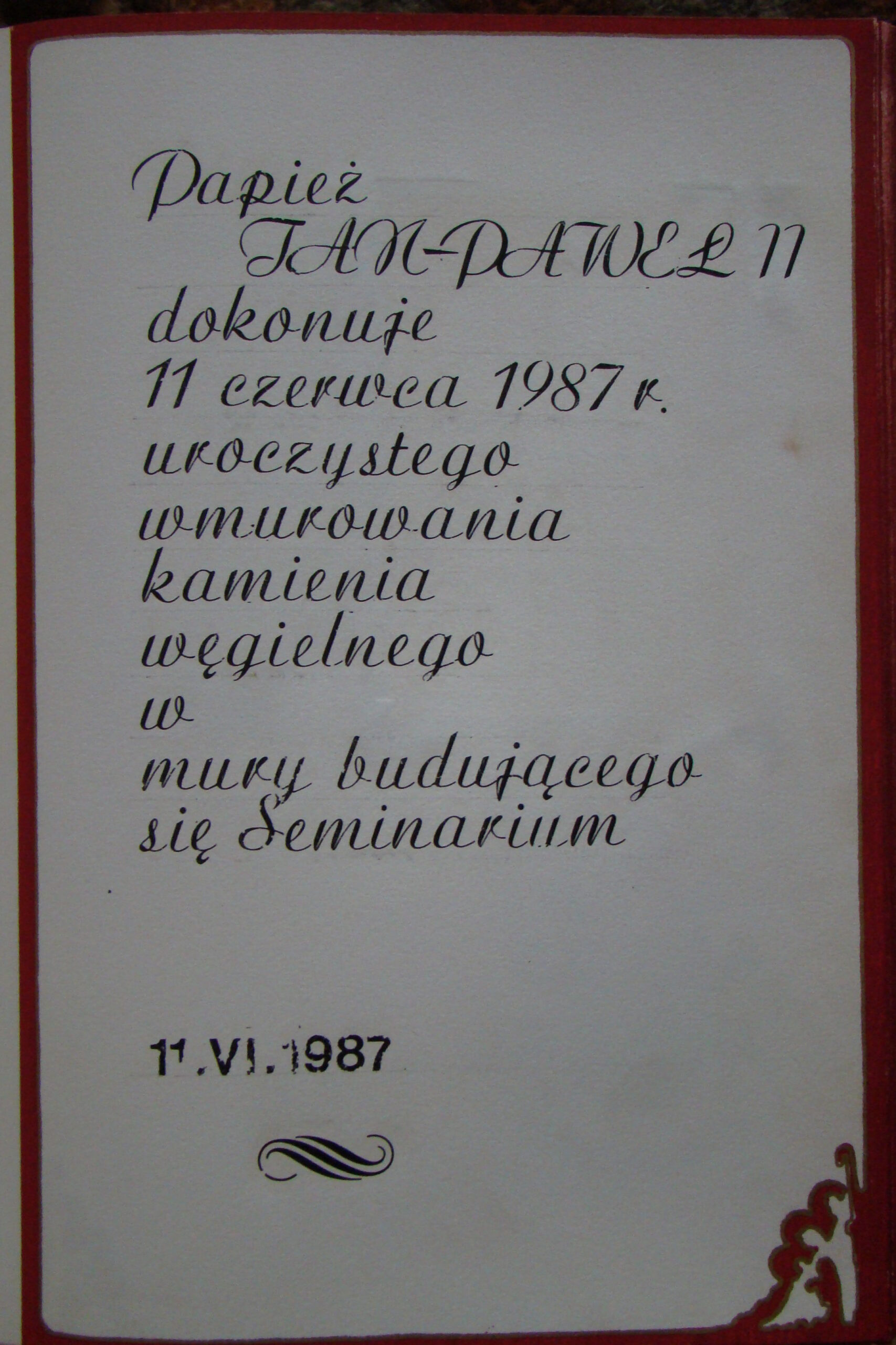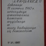 23.10.2025 r. przeżywaliśmy uroczystość związaną z 31. rocznicą poświęcenia kościoła seminaryjnego. Mszy świętej przewodniczył ks. prał. kan. Piotr Kordula – świadek poświęcenia kościoła (był wówczas komentatorem wydarzenia). Po Mszy świętej mogliśmy posłuchać ciekawych wspomnień ks. Piotra m.in. z wizyty św. Jana Pawła II w Szczecinie w 1987 r. Prezentujemy garść fotografii z Kroniki budowy seminarium.